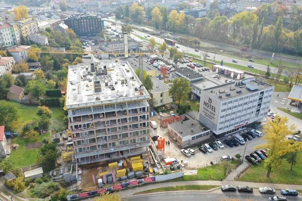 Zakres robót obejmuje: kompleksowe wykonanie obiektu budowlanego: „Budynek zamieszkania zbiorowego typu dom studencki z samodzielnymi lokalami, z nieuciążliwymi usługami towarzyszącymi (biura, drobne usługi, gastronomia, handel) i garażem podziemnym, zlokalizowany w śródmiejskiej zabudowie uzupełniającej”. Budynek wraz z instalacjami wewnętrznymi: wody ciepłej i zimnej, wody na cele p.poż., kanalizacji sanitarnej, kanalizacji deszczowej, grzewczej, wentylacji bytowej i pożarowej, elektrycznej, teletechnicznej, instalacją zewnętrzną kanalizacji deszczowej ze zbiornikiem retencyjnym, elektryczną oświetlenia terenu oraz zagospodarowania terenu w tym chodnikami pieszymi.